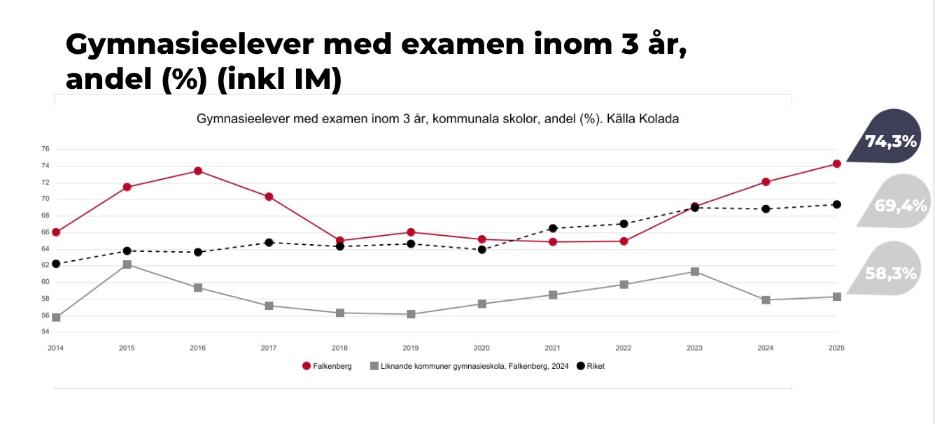Vi är stolta över att kunna dela med oss av fantastiska nyheter: Allt fler av våra elever tar examen inom tre år – och nu placerar sig Falkenbergs gymnasieskola bland de 25 procent bästa kommunerna i Sverige när det gäller studieresultat.