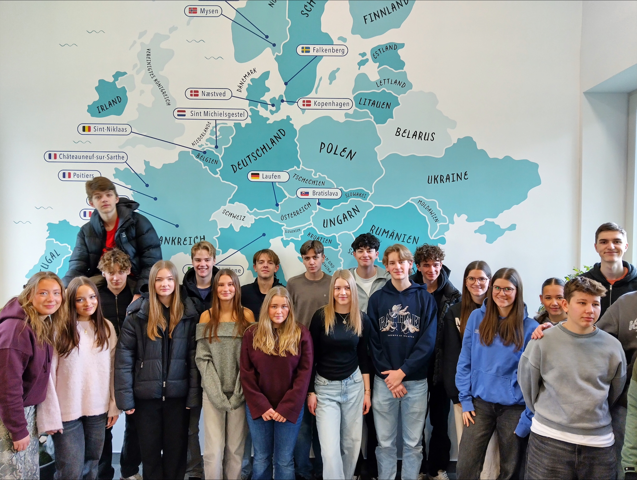 Under sista veckan i februari-25 var Erasmusgruppen (se bilden nedan) på besök på Rottamayr Gymnasium i Laufen. Denna vecka hade de en EU-vecka. Gruppen gjorde även utflykter till Alperna och Salzburg. Det är en del i ett projekt där eleverna först var i Bryssel och Europaparlamentet, sedan i Laufen och i maj-2025 var de tyska eleverna hos oss på besök.