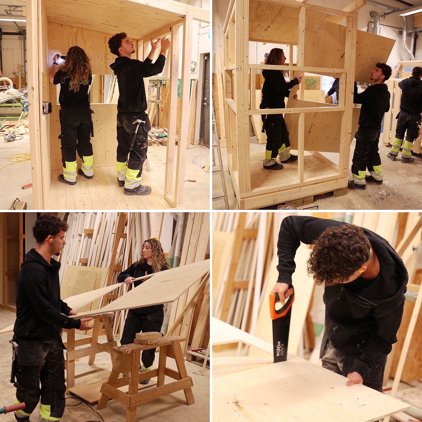 Under våren-2023 hade vi två elever från yrkesskolan i St Étienne här på utbyte, Tom och Ivan fick bland annat lära sig att bygga en vägg enligt svensk byggstandard, där de använt sig av murteknik, kaklat och satt in fönster. Med på bilderna är även rektor Nicolas Bourgeois samt vår rektor på BA, Thomas Glans och några av våra lärare.